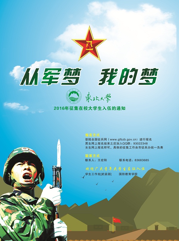 2016年是国家全面实施“十三五”规划的开局之年,是深化国防和军队改革、全面实施改革强军战略的开局之年。学校以习近平总书记系列重要讲话精神为指导,着眼全面实施改革强军战略,按照全国大学生征兵工作网络视频会议要求,根据军委国防动员部和国家教育部研究制定的《关于全力做好大学生征兵工作的通知》文件精神,深化对大学生征兵工作认识,探索征兵的特点规律,创新征兵的发展思路,努力实现我校大学生征兵工作新跨越。现将有关工作通知如下: