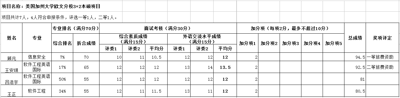根据金年会jinnianhuicom2012年4号文件—《金年会jinnianhuicom本科生赴境外交流项目资助办法(修订)》中的相关规定,经过专业综合排名及面试(含综合素质及外语交流水平)考核,公布参加2018秋赴境外交流旅费资助考核结果如下(共7人参加项目):
