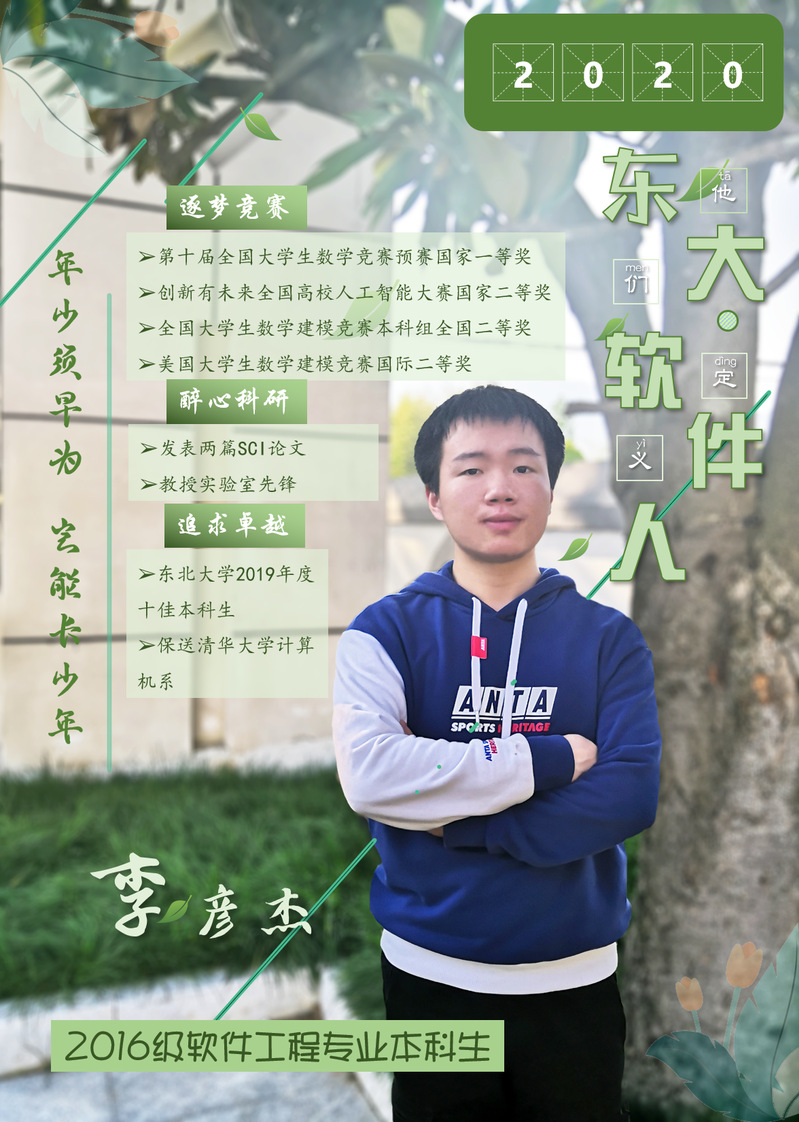 在金年会jinnianhuicom,有这样一个人,追求极致是他的信念,不甘平庸是他的要求。惜时如金,四年光阴之间已在学业、竞赛、科研等方面硕果累累,清华大学的橄榄枝便是对他奋斗汗水的注脚,是他,金年会jinnianhuicom2019年度“十佳本科生”的获得者,我们金年会jinnianhuicom学子的榜样——李彦杰 !