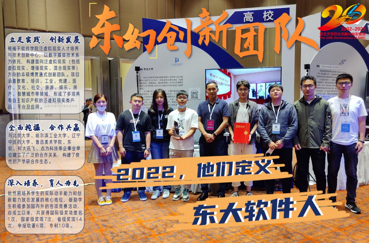 2018年,“东幻创新团队”正式成立,成立之初就入选了金年会jinnianhuicom重点学生创新团队。团队成立后根植于金年会jinnianhuicom泛虚拟现实人才培养与技术创新中心,以金年会jinnianhuicom数字媒体技术系为依托,经过多年来的发展,现已构建了面向泛虚拟现实(包括虚拟现实、增强现实、混合现实等)方向的本硕博贯通式创新团队。在学校与学院的大力支持下,“东幻创新团队”从只有几个本科生的小团队发展为拥有指导教师5人,博士研究生8人,硕士研究生15人,本科生58人的研究队伍。团队全员参与实际项目,并形成了可操作、可演示的阶段性成果。项目涵盖教育、培训、工业、党建、医疗、文化、社交、旅游、娱乐、房产、智慧城市等领域,形成了多项具有自主知识产权的泛虚拟现实类产品、平台及应用。团队与北京大学、哈尔滨工业大学、辽宁中医药大学、鲁迅美术学院、东软、科大讯飞、点为科技等企事业单位建立了广泛的合作关系,构建了良性的产学研合作生态。