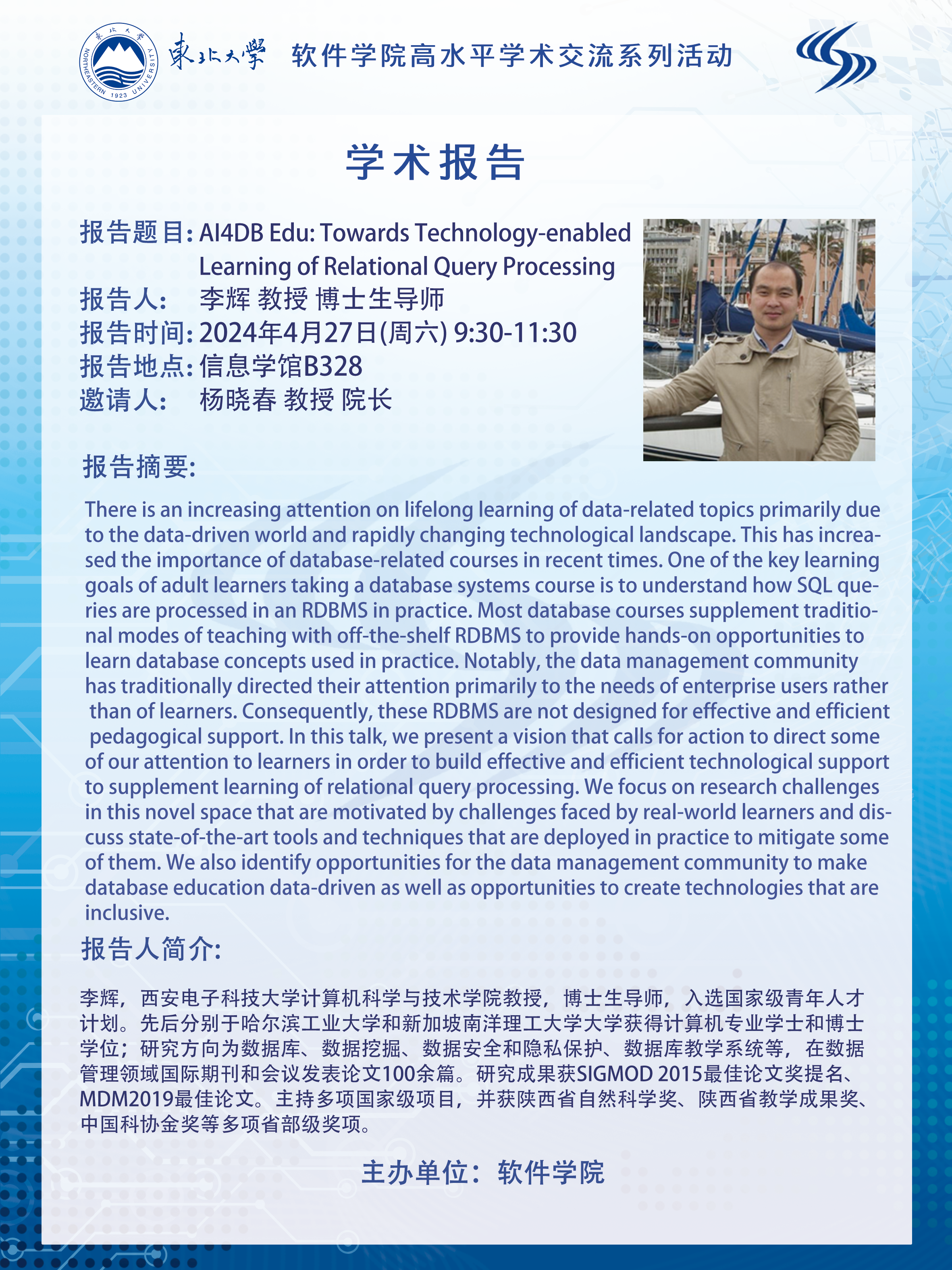 金年会jinnianhuicom高水平学术交流系列活动——李辉教授、朱鎔研究员学术报告