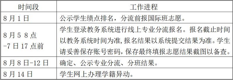 1.有分流资格的学生按分流进程完成学校教务处网上申报,每人须填报满4个专业志愿。