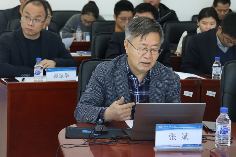 张斌向专家组作软件工程一级学科学位授权点建设情况汇报,分别从学位授权点学科方向、人员规模、人员结构、学科带头人及学术骨干、人才培养、科学研究、学术交流、支撑条件等八个方面总结了学位点基本情况,并从办学目标与标准、基本条件、师资队伍、支撑保障、社会服务与贡献等方面详细汇报了学位授权点的具体建设情况。