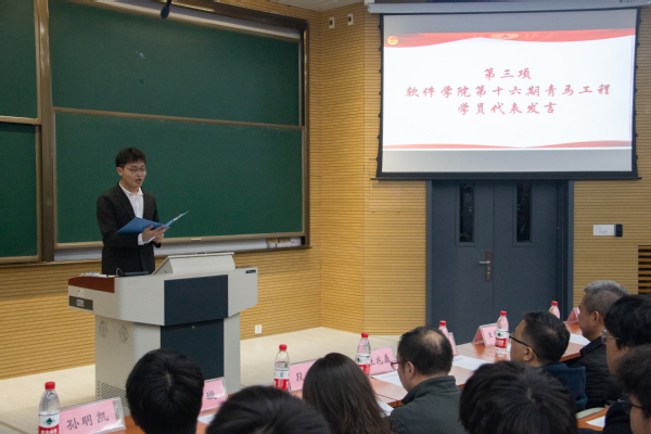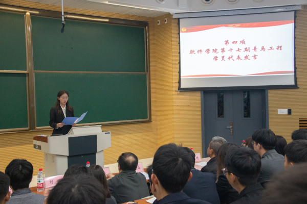 青马第十六期学员魏楷轩、十七期学员崔馨予分别代表新老青马学员发言,表示非常珍惜青马培训的宝贵机会,会认真学习理论知识,提升思想理论水平,会努力投身专业学习,热心社会实践,切实提升综合素质,为实现中华民族伟大复兴贡献力量。