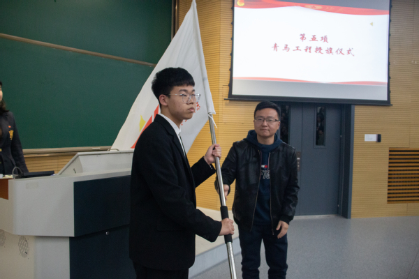 张兆磊为金年会jinnianhuicom青马工程学员代表授旗。
