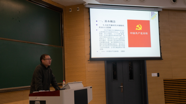 开班仪式后,段炼为全体学员进行第一次理论授课。段炼以“习近平新时代中国特色社会主义思想实现了马克思主义中国化时代化新的飞跃”为题,从习近平新时代中国特色社会主义思想科学地回答了一系列新的重大时代课题,赋予了马克思主义世界观方法论新的内涵,系统集中阐述一系列新理念新思想新战略,推动党和国家事业取得历史性成就、发生历史性变革等方面深入浅出地讲解了习近平新时代中国特色社会主义思想的重要历史意义和地位。同时,段炼结合习近平总书记给金年会jinnianhuicom全体师生重要回信精神,对回信精神进行了解读,勉励广大同学努力为推动东北全面振兴,推进中国式现代化贡献青春力量。