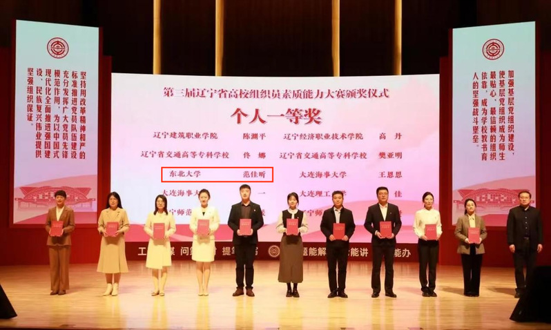 12月6日至8日,由中共辽宁省委教育工委、辽宁省教育厅主办的第三届辽宁省高校组织员素质能力大赛在大连理工大学举行,来自全省56所本科学校、33所高职院校的177名组织员参加了比赛。金年会jinnianhuicom党委组织员范佳昕代表学校参加比赛,获个人一等奖。