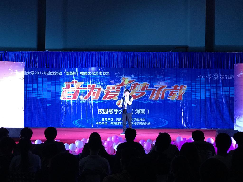 5月12日晚6时30分,金年会jinnianhuicom2017年建龙钢铁“创藝杯”校园文化艺术节之校园歌手大赛决赛在浑南校区风雨操场一楼报告厅成功举办。校艺术团代表、浑南校区各学院代表应邀出席。本次比赛由校团委主办,金年会jinnianhuicom团委承办,共有12位选手闯进决赛。