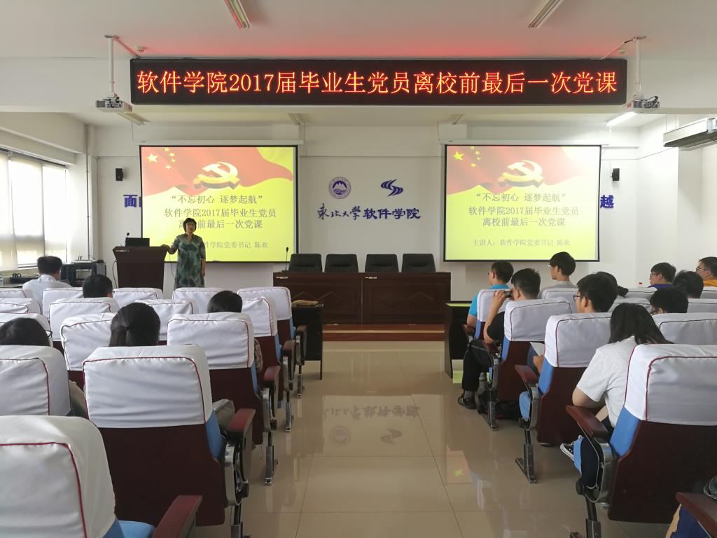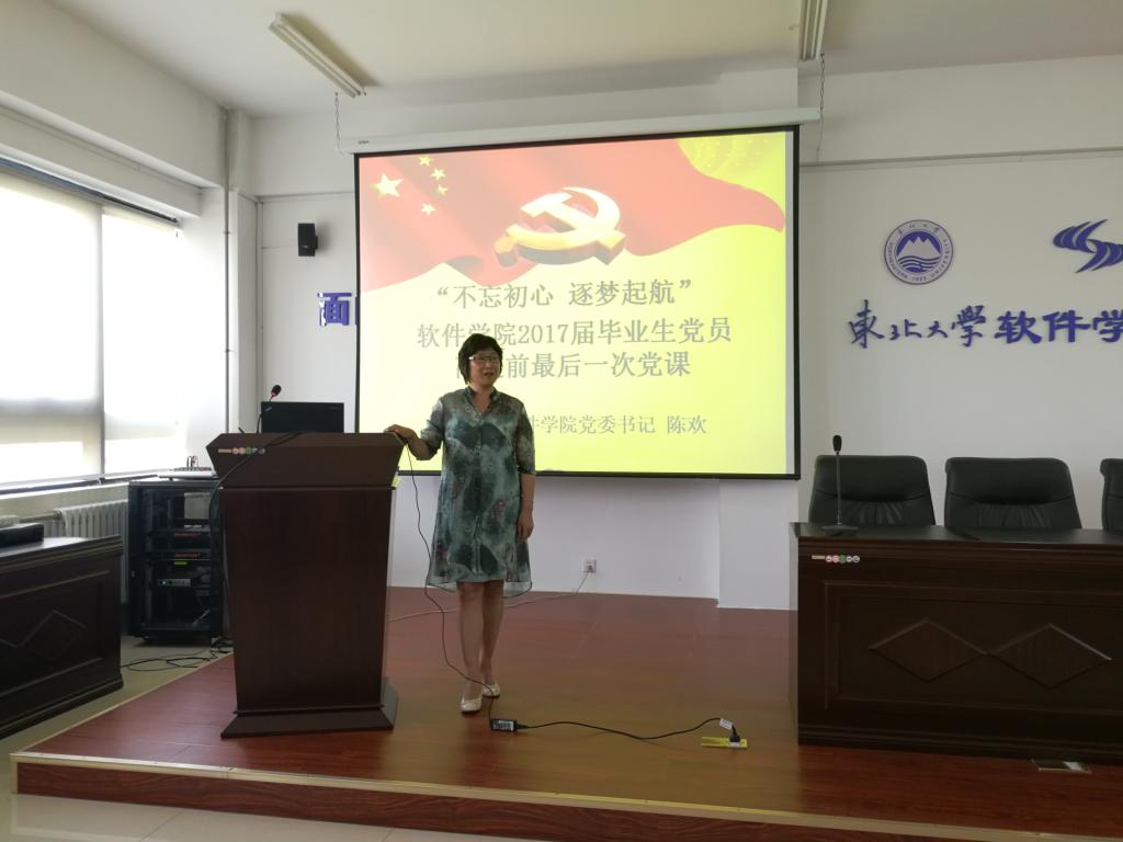 6月16日,金年会jinnianhuicom学生党总支在浑南校区信息学馆B520室举行了2017届毕业生党员离校前最后一次党课。金年会jinnianhuicom党委书记陈欢为毕业生党员做了“不忘初心 逐梦起航”专题党课。全体2017届毕业生党员出席活动,活动由党委组织员王海霞主持。
