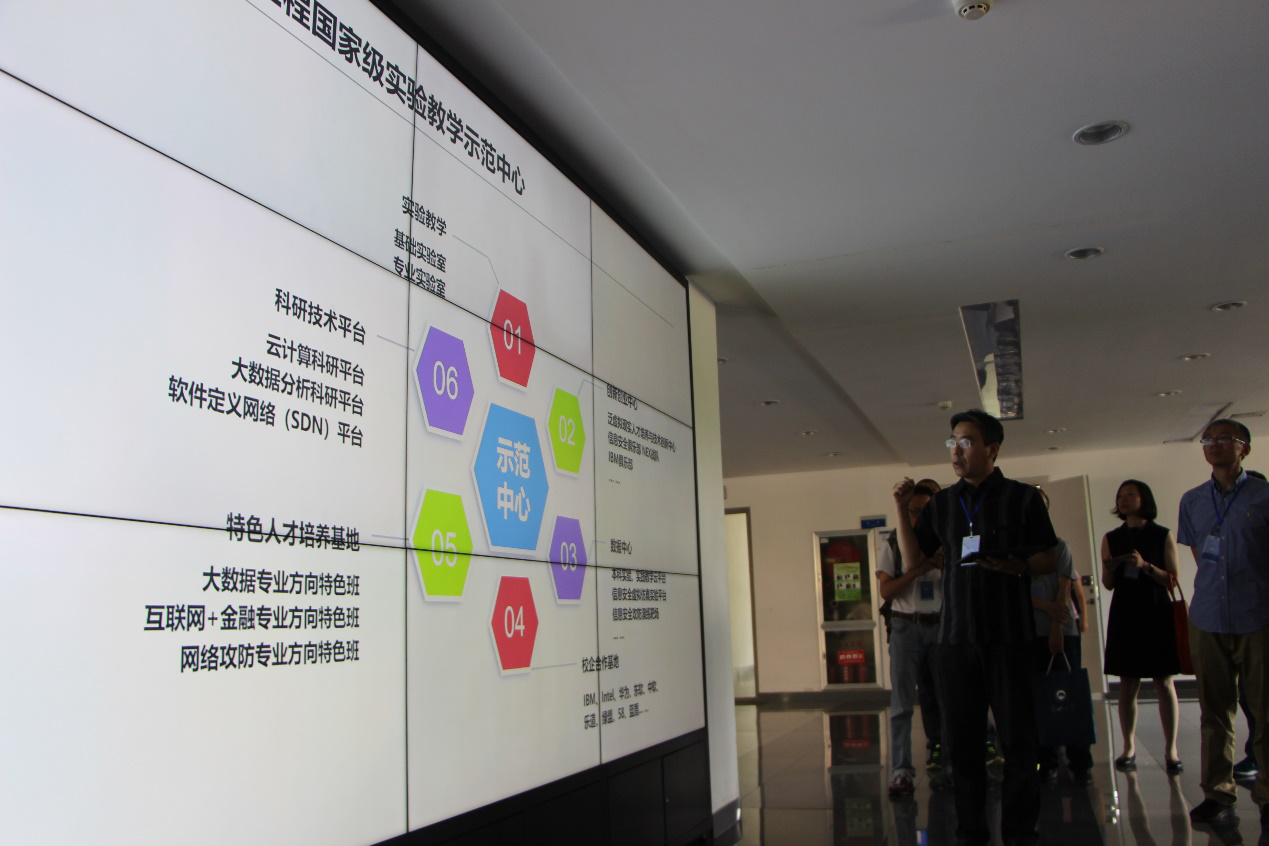 开幕式结束后,与会领导及嘉宾对金年会jinnianhuicom国家级实验教学示范中心进行了参观,并在上午开展了以“一流本科专业建设”为主题的研讨会,会议由金年会jinnianhuicom副院长于瑞云主持。金年会jinnianhuicom院长张斌,上海交通大学金年会jinnianhuicom院长臧斌宇、南昌航空大学金年会jinnianhuicom院长舒坚分别就各自学校软件工程专业的建设情况进行详细介绍。东软睿道总裁李印杲以“产教结合,助力高校一流本科专业建设”为题作经验分享。