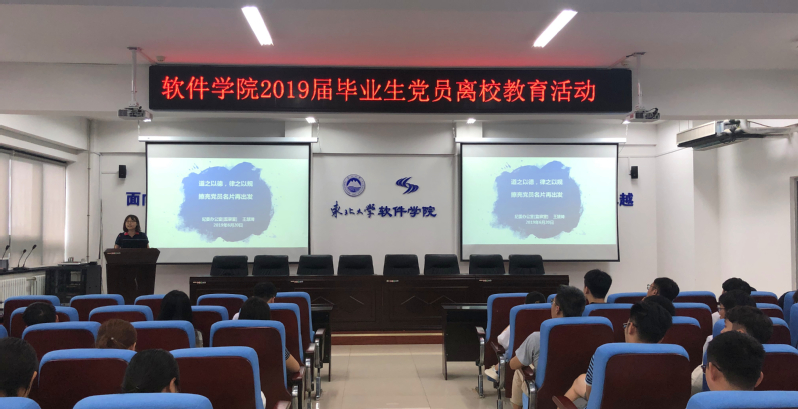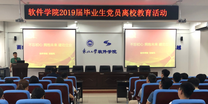 6月20日,金年会jinnianhuicom在浑南校区信息学管B520室举行毕业生党员离校教育活动。学院党委副书记兼副院长刘春风、纪委办公室正科级纪检员王慧琦、相关工作人员及2019届全体毕业生党员参加活动。
