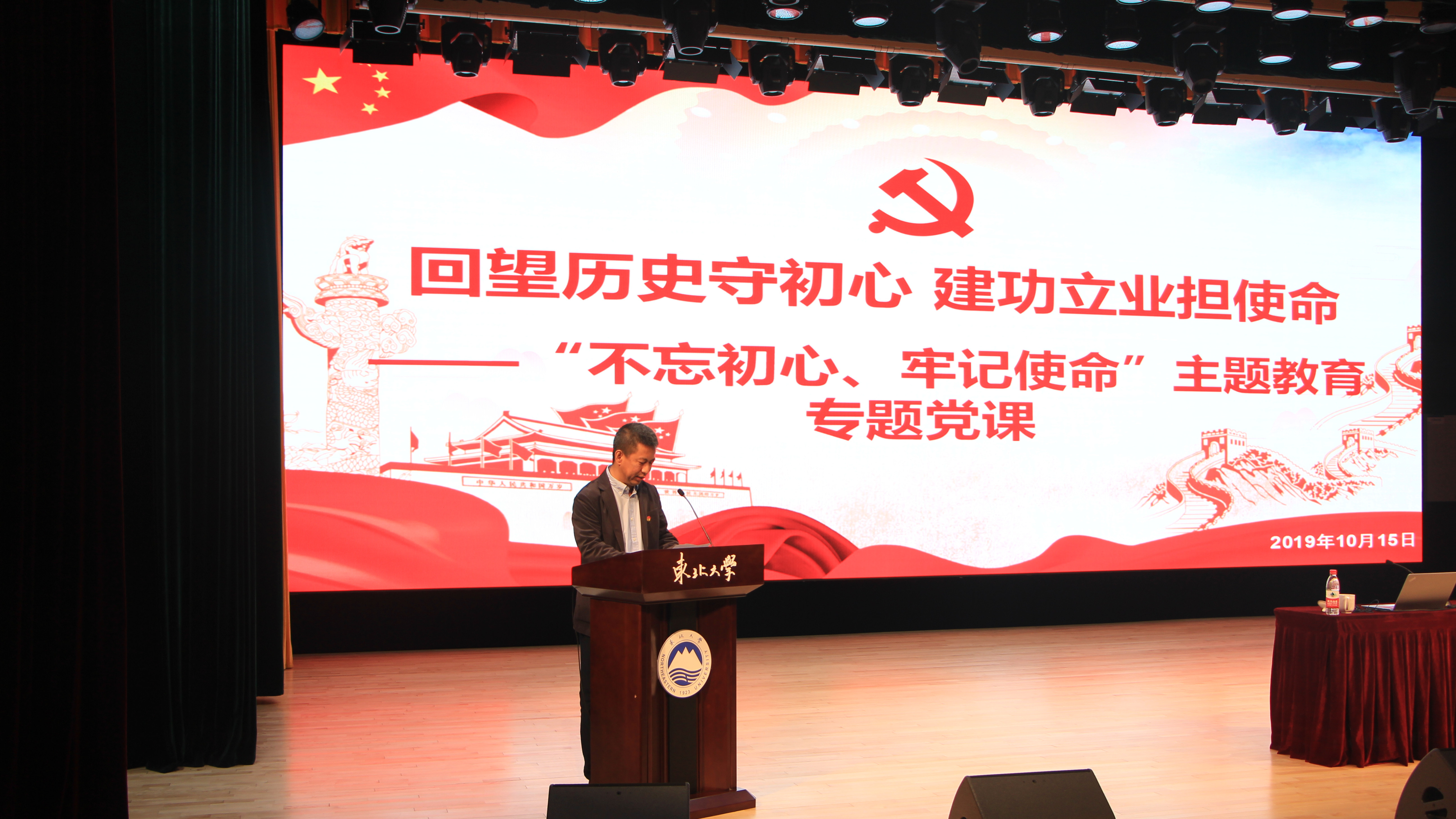 10月15日下午,副校长孙雷在浑南校区图书馆报告厅为基建管理处、对外联络与合作处、浑南校区管理委员会、沈河校区管理委员会、继续教育学院、金年会jinnianhuicom、工商管理学院等七个部门讲授“回望历史守初心建功立业担使命”专题党课。金年会jinnianhuicom党委书记滕超主持专题党课,七个部门共计570名师生党员参加专题党课学习。