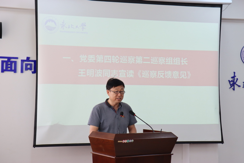 7月22日上午,金年会jinnianhuicom党委第四轮巡察第二巡察组巡察金年会jinnianhuicom反馈意见大会在浑南校区信息学馆B520室召开,校党委巡察工作领导小组成员、校纪委副书记、党委巡察工作办公室主任王剑,党委第四轮巡察第二巡察组组长、体育部党总支书记王明波及第二巡察组成员,党委巡察工作办公室全体人员出席会议。金年会jinnianhuicom领导班子成员、教职工代表以及学生代表90余人参加会议,会议由金年会jinnianhuicom院长张斌主持。