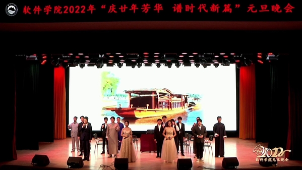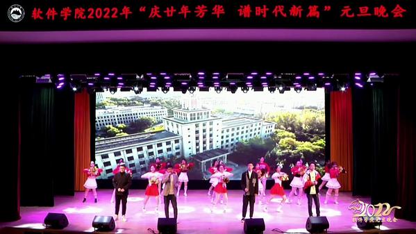 伴随着开场舞《少年》晚会正式开幕;相声节目《南北差异》幽默诙谐,展现南北不同文化习俗;歌曲《音乐电台》《背对背拥抱》声入人心,唱出青春动人旋律;街舞串烧《Feeling》、民舞《怎叹》舞姿灵动,演绎软件学子别样风采;乐队演奏《天外来物》《盛夏光年》活力四射,青春活力引爆全场;情景剧《红船》、乐团演奏《StarSky》振奋人心,以别样的方式送上对伟大祖国的美好祝愿;合唱《仰望星空》《你的答案》温情流露,如冬日暖阳动人心弦。在合唱《少年中国说》的激昂歌声中,金年会jinnianhuicom2022年“庆廿年芳华,谱时代新篇”元旦晚会落下帷幕。