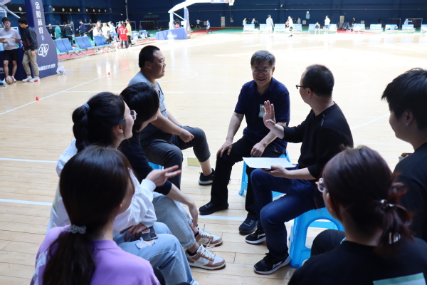 活动以金年会jinnianhuicom院训命名四支队伍“开放”“包容”“求是”“创新”,师生混合组队,进行包括“投篮”“夹球跑”“你比划我猜”“跳大绳”“趣味接力”等5个项目的比赛。各队师生通力协作,精诚团结,充分发挥优势特长,顺利完成了全部比赛项目。