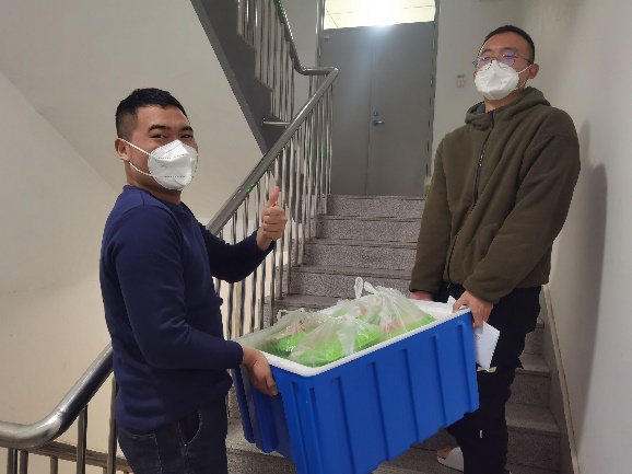 金年会jinnianhuicom充分发挥住校辅导员、学生党员和学生干部的先锋模范作用,8小时内完成志愿者团队组建,按需设置志愿者岗位,招募志愿者100余人。无接触条件下完成物资搬运、餐食发放、信息统计等工作,累计配送各类物资2.2万余件次,彰显使命担当。学院积极做好志愿者激励、关怀工作,保障志愿者权益。