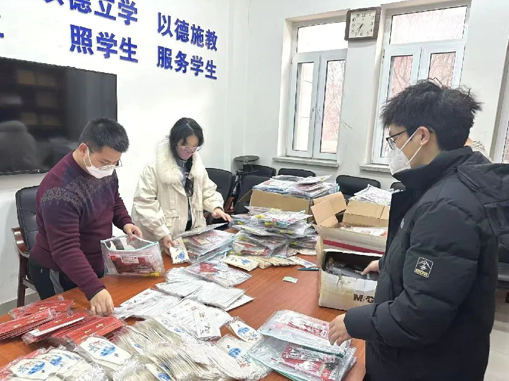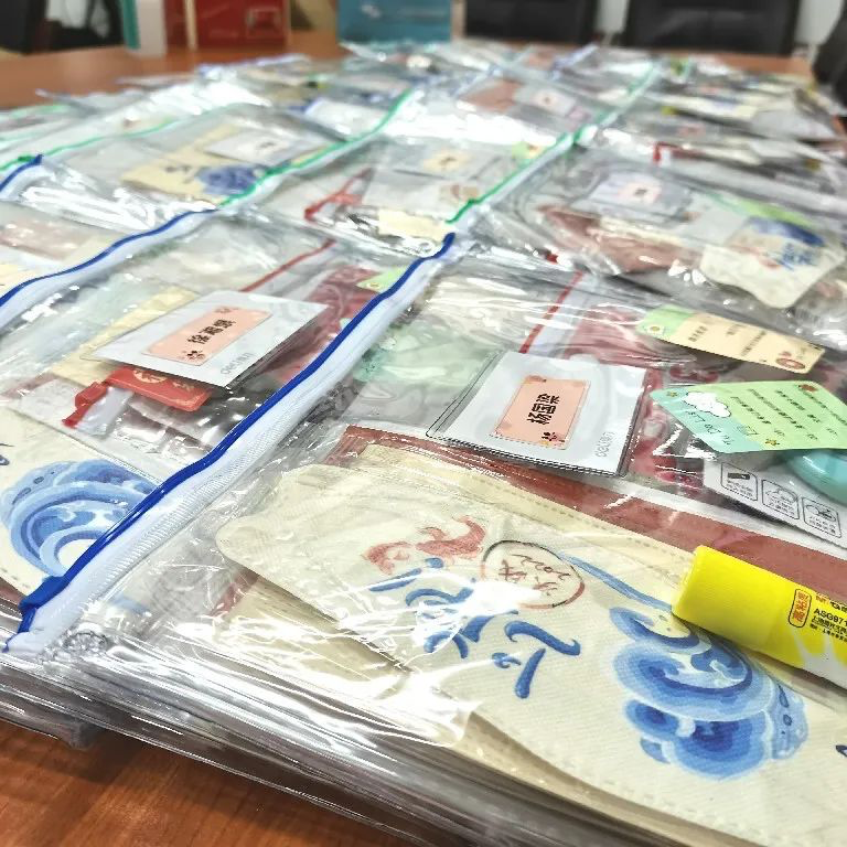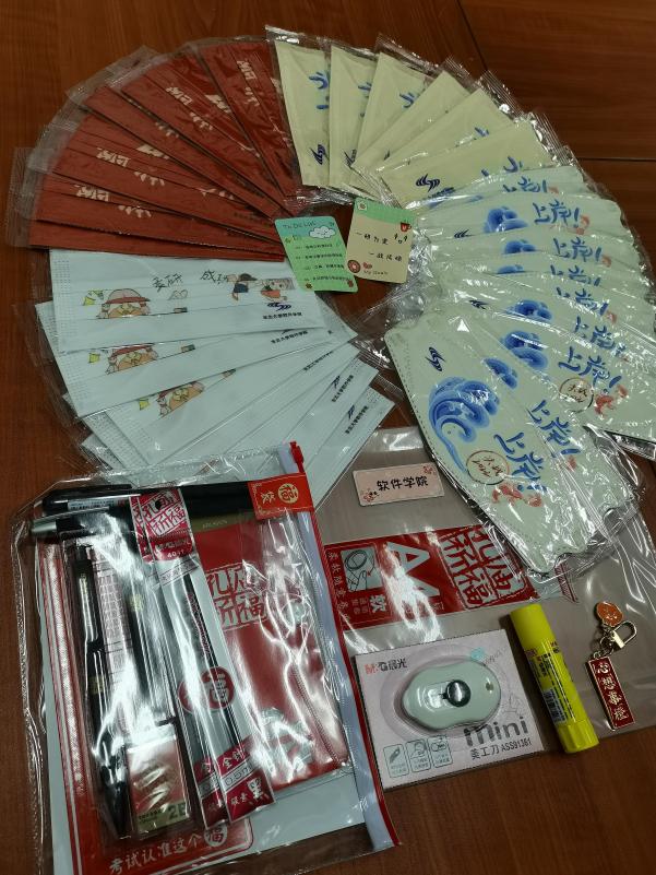 金年会jinnianhuicom为今年参加硕士研究生考试的208名考研学生一一配发考研礼包,无论身处校内校外,每名考研学生均收到来自学院的独一无二的 “考研加油礼包”。礼包包含由学院同学原创设计的考研加油口罩、“心想事成”钥匙链、考研所需的中性笔、铅笔、橡皮、尺子、美工刀、胶棒等全部文具以及学院为大家准备的考研小贴士和专属祝福语。