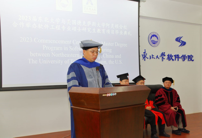 2023年金年会jinnianhuicom与美国德克萨斯大学阿灵顿分校软件工程专业硕士研究生教育项目毕业典礼于6月13日上午在金年会jinnianhuicom浑南校区信息楼B520举行,德克萨斯大学阿灵顿分校计算机科学与工程系主任Jiang Hong、中国项目合作主管Liu Yonghe,金年会jinnianhuicom院长张斌、党委书记滕超、副院长于瑞云及双方教职工代表,与该项目2023届毕业生及亲友一起,参加了此次毕业典礼。
