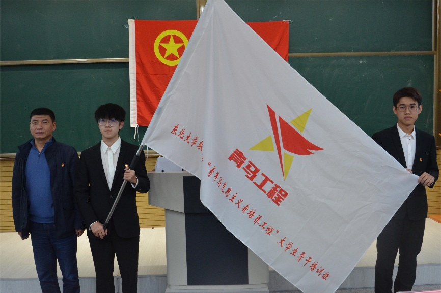 刘春风为本次“青马工程”学员代表授旗。