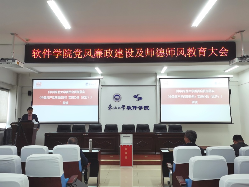 11月23日下午,金年会jinnianhuicom在浑南校区信息楼B520召开会议,传达学校“廉洁大讲堂”会议精神及会议要求,通报十九大以来学校立案查处的违纪违法案例,并针对学校正在开展的干部选聘工作,通过“干部选拔任用相关案例”和从《戒尺(二)》中筛选的案例开展警示教育。会议由金年会jinnianhuicom纪委书记任涛主持,学院全体教职工参会。