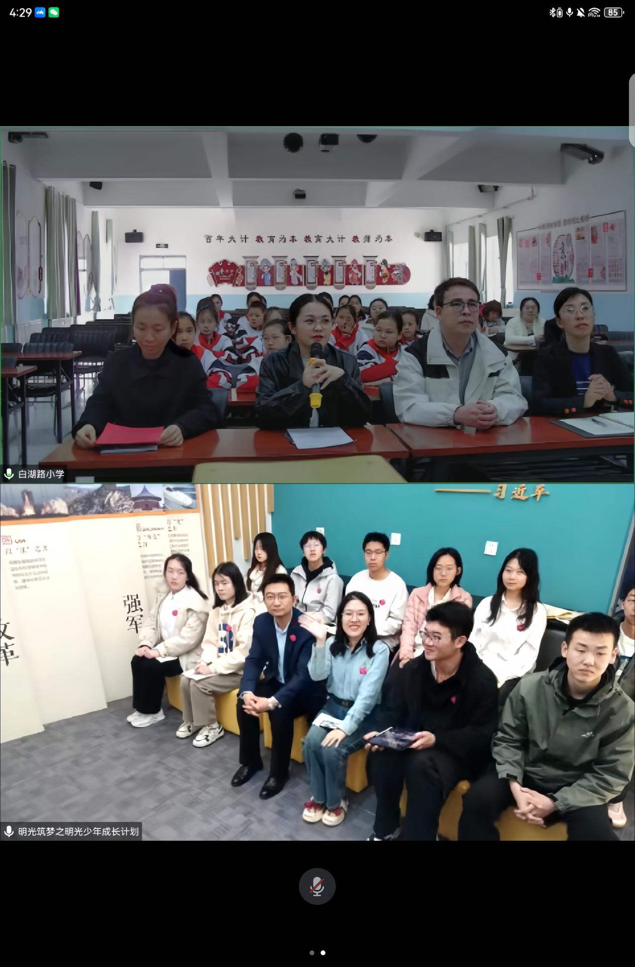 4月3日下午,金年会jinnianhuicom“明光筑梦”计划之“明光少年成长计划”启动仪式举行。仪式通过线上会议形式举行,在金年会jinnianhuicom浑南校区和新疆阿勒泰地区布尔津县分别设置会场。新疆阿勒泰地区布尔津团县委书记王立丽,金年会jinnianhuicom副院长、明光筑梦计划指导教师郭军,金年会jinnianhuicom相关负责人,金年会jinnianhuicom“明光筑梦”计划志愿者代表、布尔津县白湖路小学师生代表参加仪式。