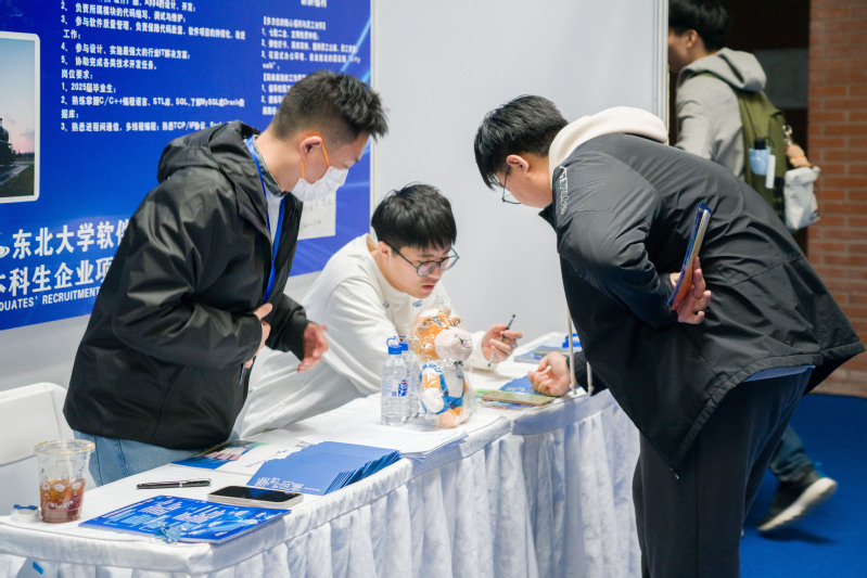 随后,双选会开始,企业向学生宣传介绍企业情况,学生投递简历与企业交流,场面火爆,气氛热烈。同学们纷纷表示,通过学院搭建的平台,有了更多和企业交流的机会,为未来走向高端就业提供了良好契机。企业也表示,通过实训项目能提前与学生有更多接触,增进了解,为企业吸纳需求人才提供了良好平台。